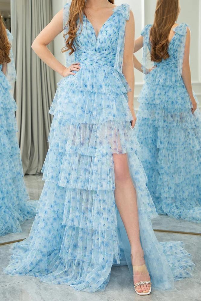 فستان سهرة منفوش بطبقات كشكش