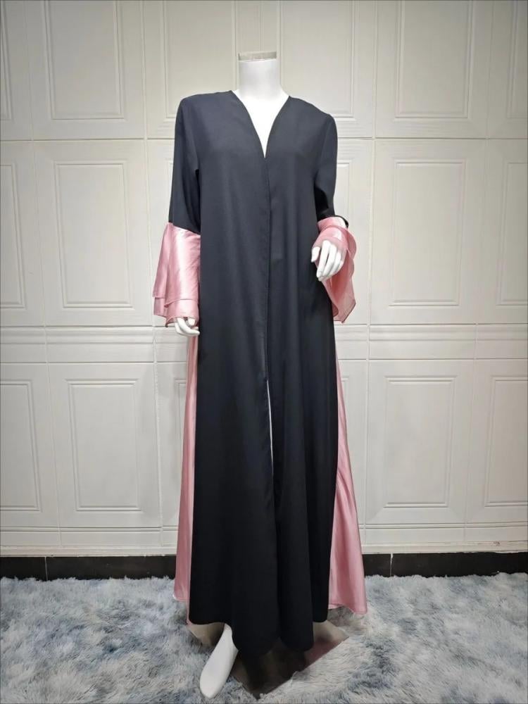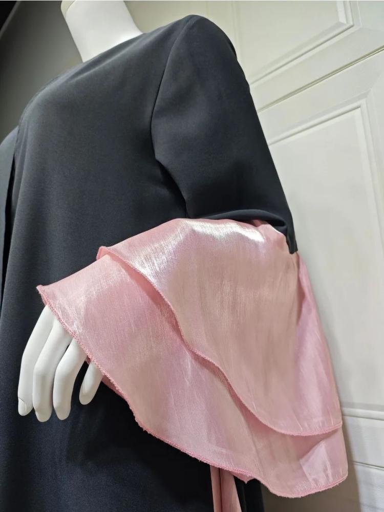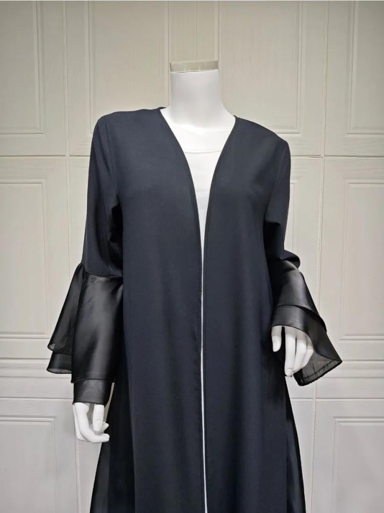 عباية أنيقة تتميز بقصتها الواسعة أكمام مزينة القماش اللامع يتميز القماش بجودته ونعومته