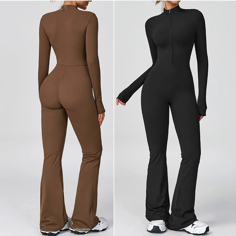 بذلة واسعة الأكمام طويلة الأكمام: ستضيف هذه البذلة ذات الساق الواسعة من قطعة واحدة إحساسًا بالأناقة والأناقة إلى نزهات الخريف والشتاء.