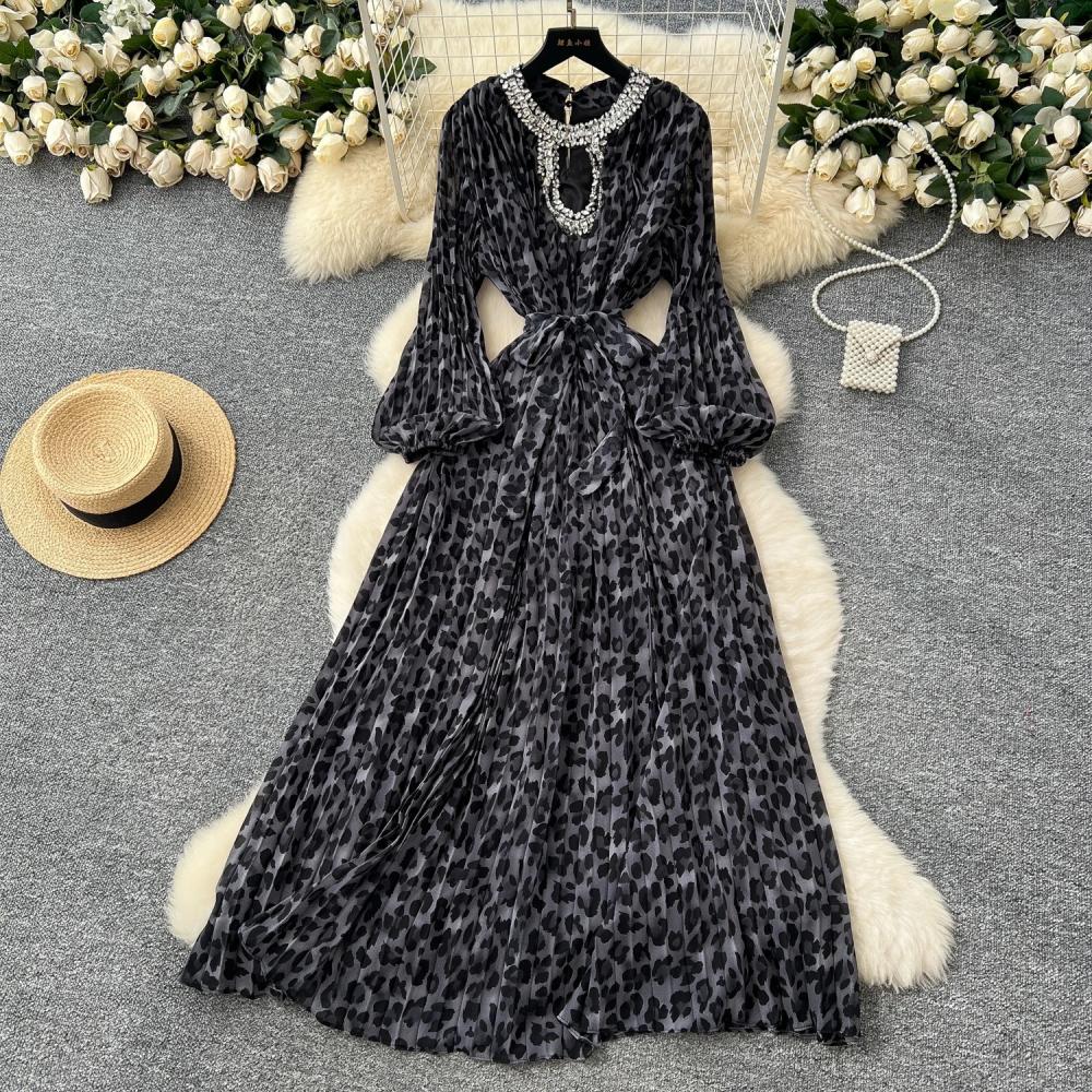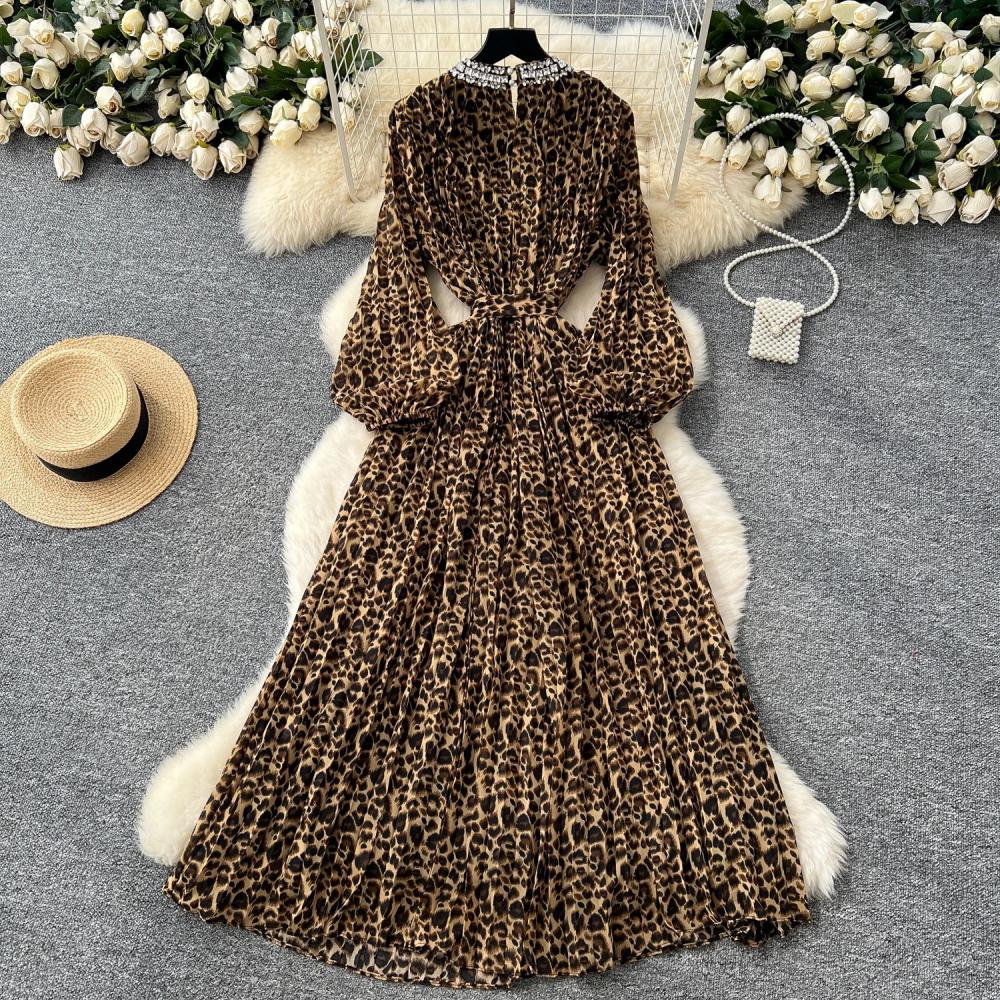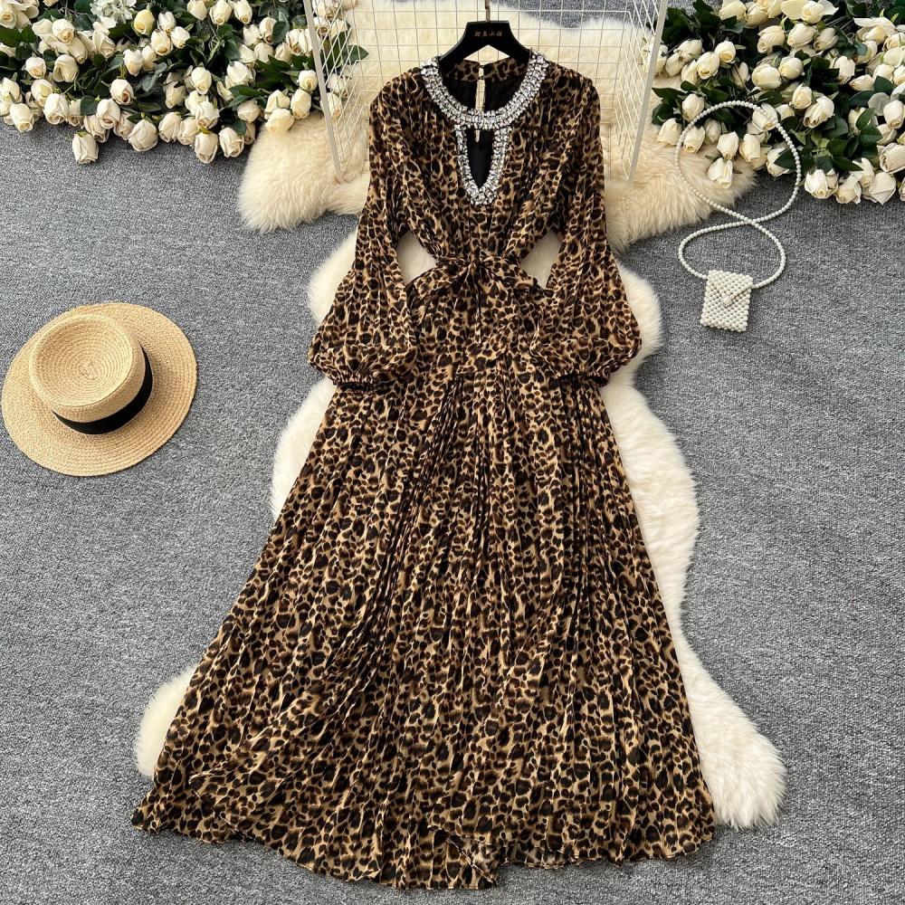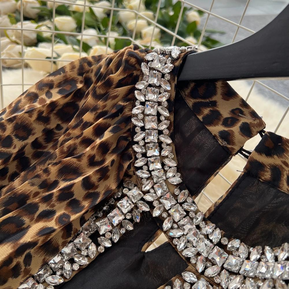 فستان تيقر بليسيه خفيف بقصة أنثوية مزين بأحجار براقة حول الرقبة